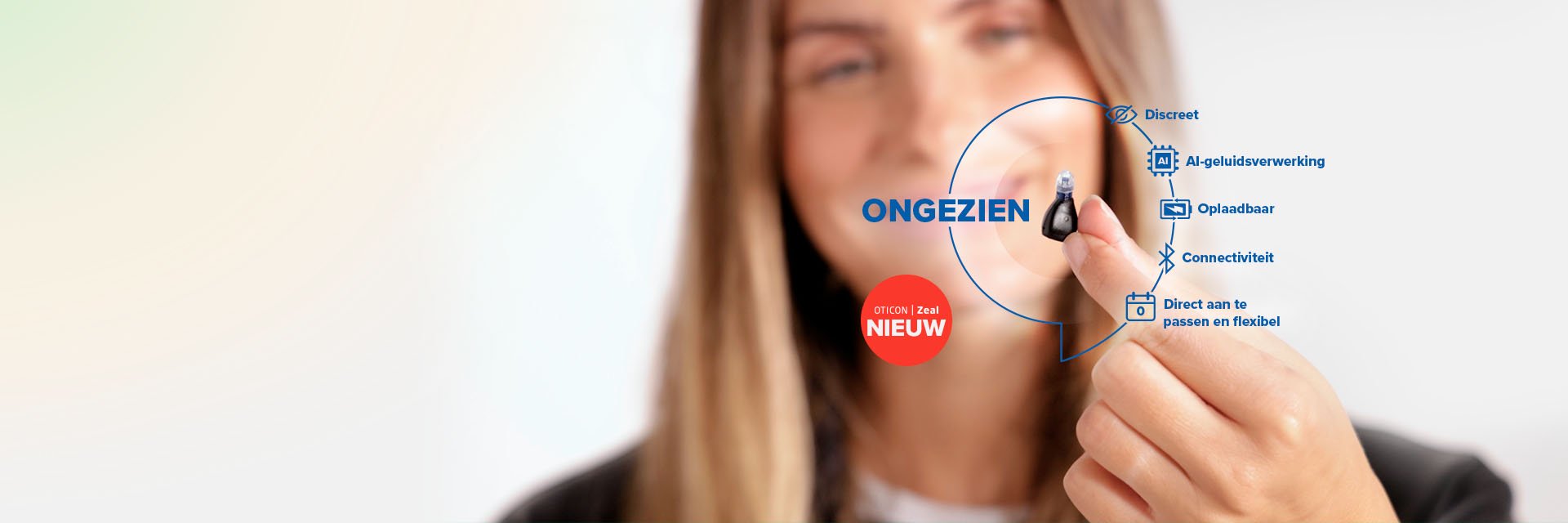 Oticon Zeal™ is zo discreet dat het enige wat opvalt, jouw zelfvertrouwen is.